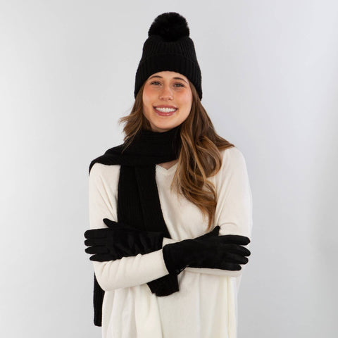Our Black Noelle Gloves offer a polished blend of style and function, featuring subtle two-tone detailing and a sleek, refined silhouette. Designed with a soft stretch fit for all-day comfort and touchscreen-compatible fingertips for added convenience. Finished with four button accents for a timeless, tailored look—an easy cold-weather accessory for gifting or everyday wear.