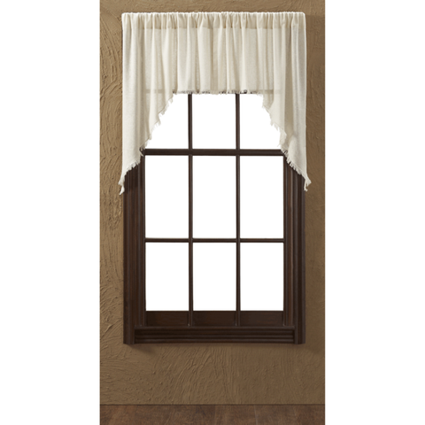 The Tobacco Cloth Natural Swag Fringed Set brings a luxuriously upscale farmhouse look to your home or retreat. A lightweight natural shade tobacco cloth drapes your window in sheer elegance with its soft and simple texture.