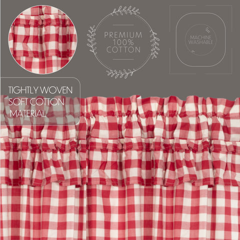 Add a touch of classic, farmhouse style to your window with the Cherry Ann Red Buffalo Check Ruffled Valance. Displaying exquisite, modern design with large scale red and white checks, perfect for your updated country style home. Curtains include rod pocket for easy hanging and drapes beautifully with a ruffled edge. Lined with white cotton.