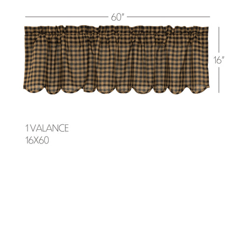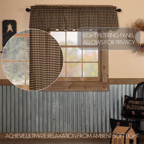 The primitive country Blackstone Farm Scalloped Valance features black and khaki checks that are blended with texture at points of intersection to give a modern facelift to the classic pattern. Perfect for your country and primitive window decor.