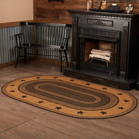 The Blackstone Farm Star Braided Rug Oval is ready for your home, retreat or cabin with its durable and beautiful construction. Featuring alternating braids in black and tan and stenciled black 5-point stars for years of enjoyment.