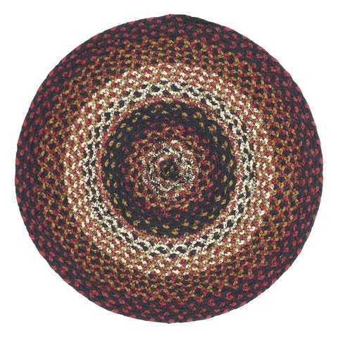 Protect your furniture in primitive farmhouse style with our Brick Raven Jute Round Trivet 15". This 15 inch rustic table trivet is the perfect feature to stop heat from hot pots and pans from destroying a valued table or countertop. The homemade feel comes to life with the woven braided jute wool blend fabrics in brick red, black, dark tan and white displayed in concentric circles. Sold individually.