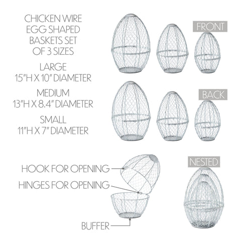 Chicken Wire Egg Shaped Baskets Set of 3 – Lange General Store