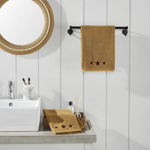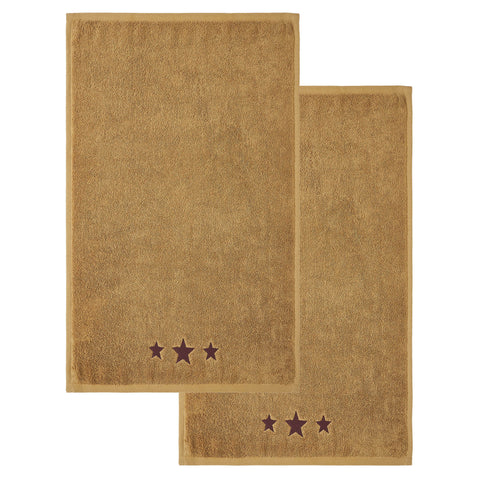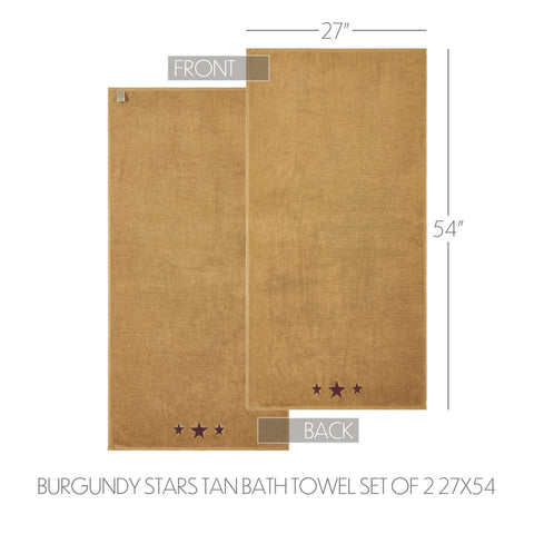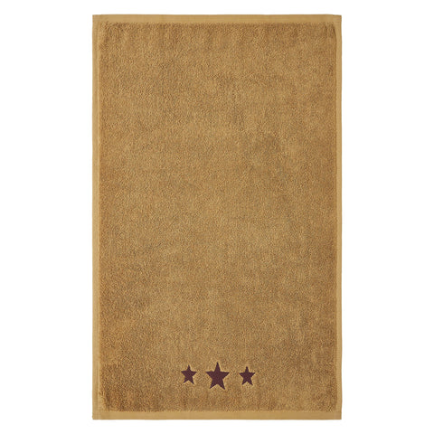Add a touch of rustic elegance to your bathroom with the Burgundy Stars Tan Washcloth and Bath Towel. These plush and absorbent cotton terrycloth towels are designed for both comfort and durability. The neutral doe tan hue serves as a warm backdrop, while the embroidered design at the bottom features three five-point stars in a rich burgundy shade, enhancing the farmhouse or country charm of your space. The embroidered stars evoke a classic prairie barn design, adding a timeless decorative element to your bathroom decor. These wash cloths and bath towels are machine washable, ensuring they remain soft and absorbent through repeated use, making them as practical as they are stylish. Whether you're updating your country-themed bathroom or looking for high-quality, decorative towels, this set brings a cozy, farmhouse feel to your space while serving as a practical necessity for your home.