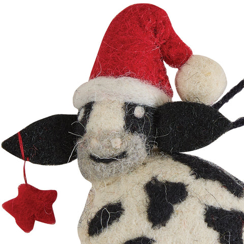 Add a touch of festive cheer to your yearly holiday decorations with our Christmas Cow Felt Ornaments Set of 4. Crafted with care and attention to detail, this set of four decorative hanging ornaments capture the spirit of the magical winter season. Each stitched ornament comes with a sturdy loop for easy hanging, the soft felt material providing a lightweight and ideal element for family and pet friendly Christmas tree decorating. Hang these on a Christmas tree, wreath, garland, mantel, gift basket, or anywhere else you want to infuse a dash of seasonal joy.Â