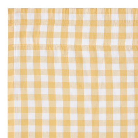 Redefine your farmhouse bedroom with a touch of cozy cottage elegance. Our Cornsilk Yellow Buffalo Check Swag Set of 2 features classic buffalo check in calming colors of cornsilk yellow and soft white. Finished with a white cotton lining to help filter light. Place these buffalo check curtains in your kitchen, dining room, or washroom for a lighthearted vintage feel. Lined in white cotton.
