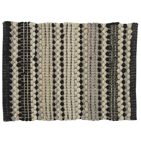 The Crosswood Chindi Placemats Set of 4 is the perfect vintage country farmhouse or lodge addition to your table. Featuring grey-beige, black and antique white weave, placemats add texture and color to your table.
