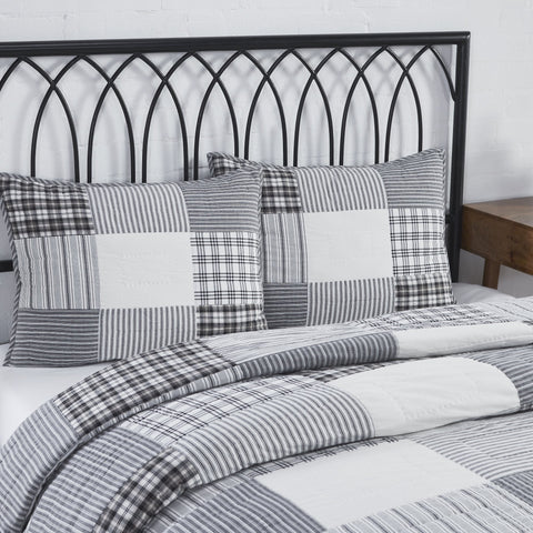 - Farmhouse Decor — Classic black and soft white arranged in a patchwork design enhance the farmhouse look of this cozy sham. Country-style ties allow you to open and close this handcrafted sham with ease.