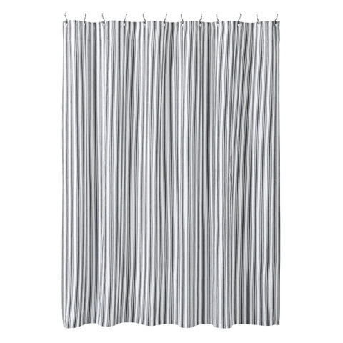 Create an inviting farmhouse tone into your bathroom with the 72x72 Farmstead Black Ticking Stripe Shower Curtain. Our shower curtain is designed with a straight edge, flat weave with warm black and soft white hues. 100% cotton lines the inside of this country bathroom accessory. Rod pockets are located near the top of the shower curtain for easy hanging.