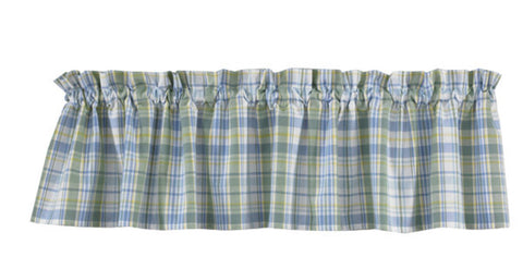The Cornflower Valance tastefully features plaid of cornflower blue, sage green, yellow and white plaids. It's the perfect blend of farmhouse elegance and country cottage charm. Lined with 100% white cotton. Tiers sold separately.