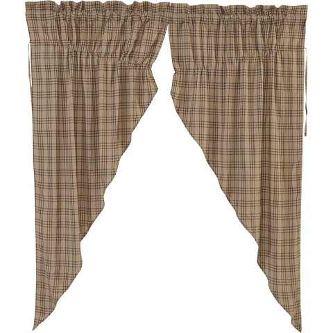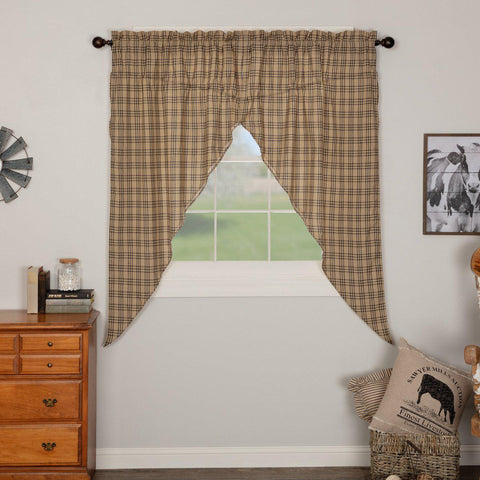 Bring a Farmhouse mood to your window with the Farmstead Plaid Prairie Curtain Set. The base is a dark tan under a tasteful large-scale black plaid.