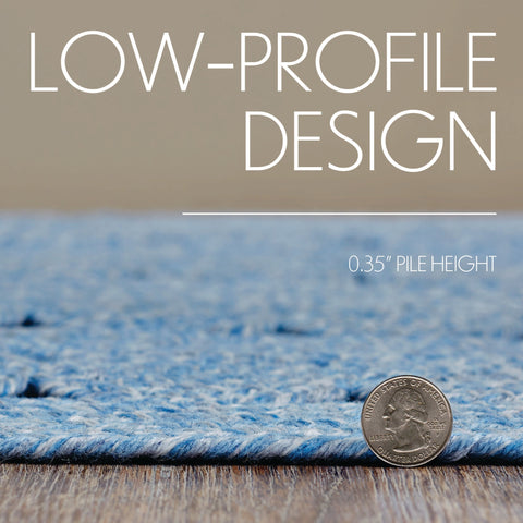Give your patio or entryway a rug that is both stylish and practical. The Blended Blue Braided Indoor Outdoor Rug measures 19.5x36 inches and is crafted with 100% recycled polyester material (PET) making it waterproof and durable. The half circle shaped rug is suitable for both indoor and outdoor use and features a soft denim blue coloring suitable for a wide variety of country farmhouse and cozy cottage looks.