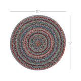 Our Abigail Braided Trivet 15" sets your country table beautifully with alternating blue, forest green, natural tan and garnet red braids.  Use to protect your surfaces from heat or condensation.