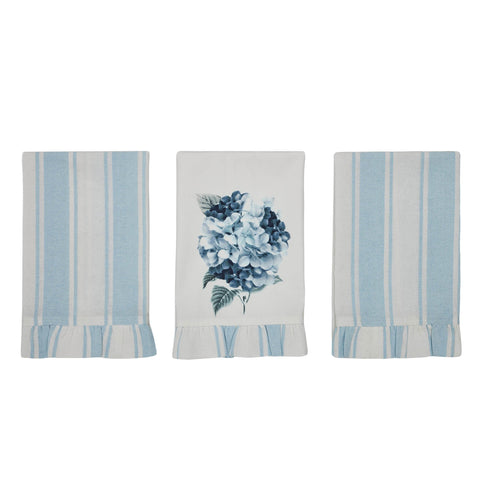 Serene Hydrangea Ruffled Tea Towel Set of 3