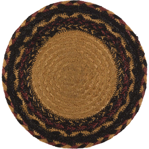 - PRIMITIVE PALETTE: This trivet contains concentric solid and mixed braids of tan, black, and burgundy