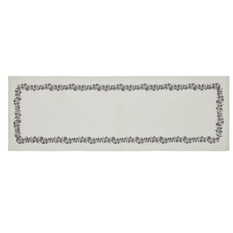 - Enhance your dining room or kitchen with the charming Serene Haven Collection table runner in Soft White and grey.