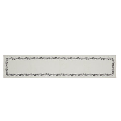 - Elevate your table setting with this beautiful Soft White and grey runner from the Finders Keepers Collection.