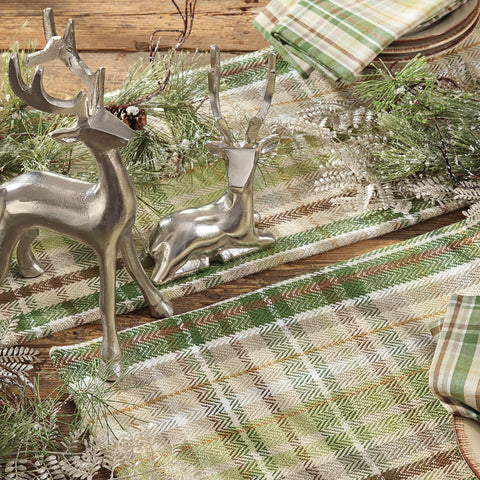 Set your country table with the Winter Morning Table Runner. Featuring hues of green, brown, tan and white plaid pattern. It makes a stunning table statement.