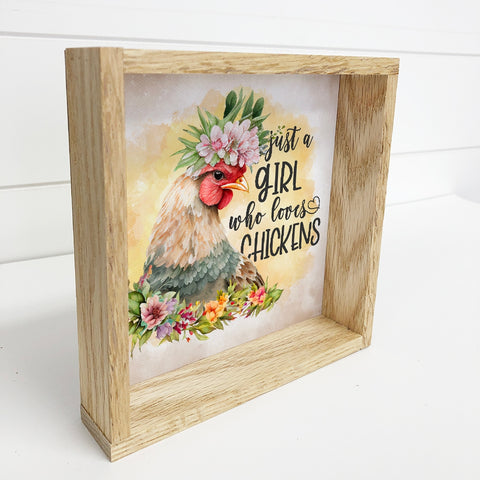 This cute Just A Girl Who Loves Chickens is perfect for your country home. Hang it or display it in your kitchen, bathroom, laundry room or bedroom!