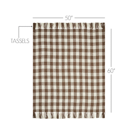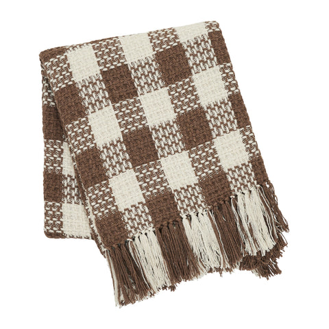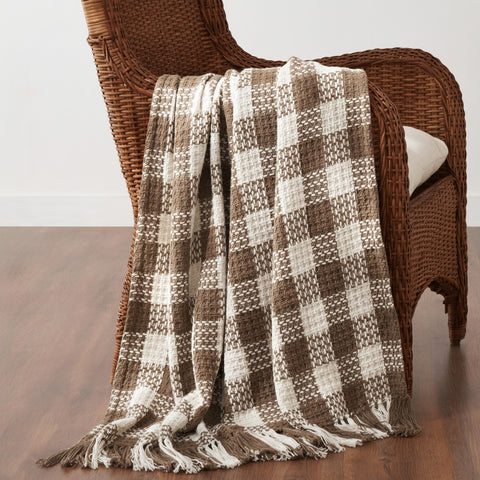 Whether draped over the back of chair or keeping you cozy, this classic plaid throw blanket will add a sophisticated style wherever it lands. Carrington Cocoa Brown Woven Check Throw Blanket measures 50x60 inches and is constructed with a durable cotton polyester blend. Blending Cocoa Brown and cream tones in a classic woven pattern with fringe, the tasseled throw blanket is perfect for holiday decor or year-round farmhouse style.