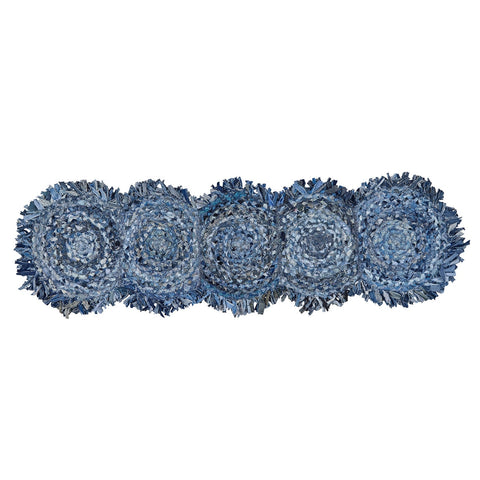 Gather around the table with a dining space full of love and gratitude from the addition of this Denim braided table runner 54". The hues of blue braids add an addition to any dining room decoration. Creates a decorative statement to remember as a stunning dinner table centerpiece display or a primitive accent tabletop backdrop. This dinner mat is constructed of a high-quality cotton material, effortlessly combining aesthetic appeal with functionality by offering an absorbent protective surface that will help block potential scuffs or spillages from leaving lasting impacts on your tabletop surface.