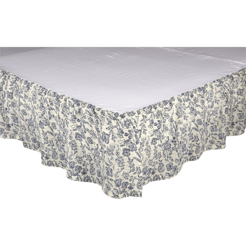 - Country Charm: Bed skirt features a two-tone denim blue floral print gathered ruffle with 16" drop