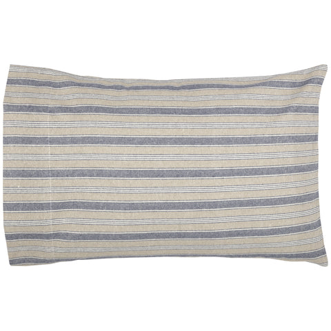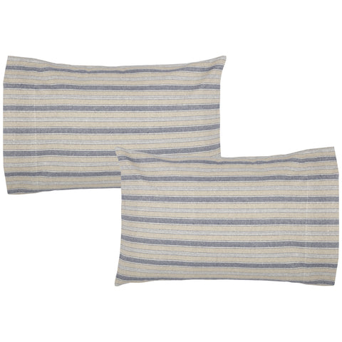 - Grain Sack Stripe — Each pillow case features a denim blue, creme, and khaki woven striped fabric