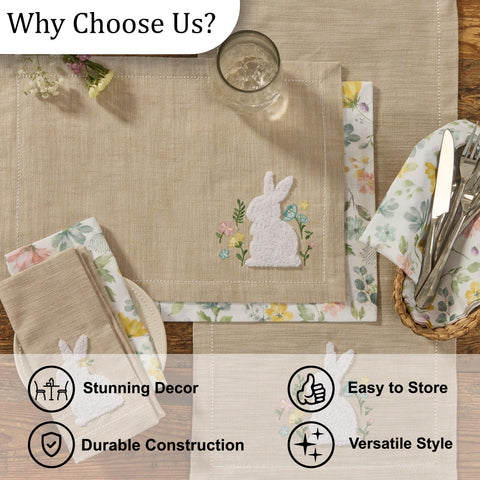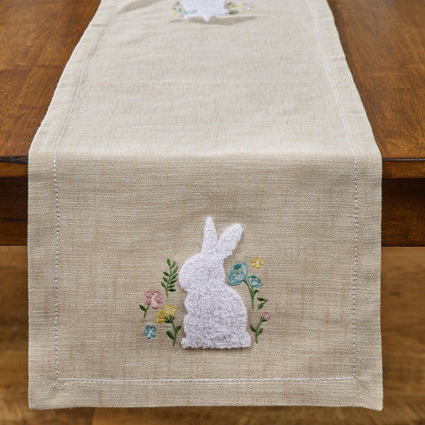 Add Spring charm to your country kitchen with our Fuzzy Bunny Table Runner 42" Featuring a beautiful bunny and embroidered flower pattern, our table runner adds texture and color to your table.
