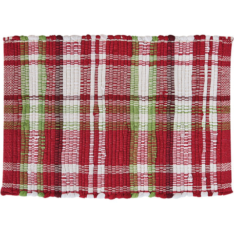 Elevate your holiday table with our Happy Holidays Chindi Placemats. Crafted through traditional handweaving techniques, each placemat showcases thoughtfully curated red, green, and white holiday tones and subtle pattern work that complements any sophisticated tablescape. The natural chindi construction offers both visual elegance and practical resilience, resisting everyday wear while maintaining its refined aesthetic.