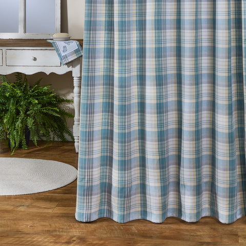 The Water Blue Shower Curtain features shades of water blue plaid. Create a beautiful country bathroom with the Water Blue Collection.