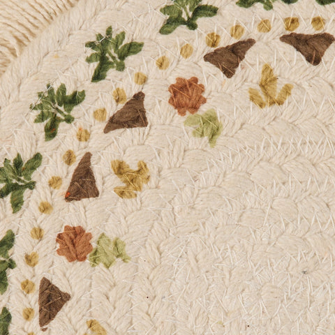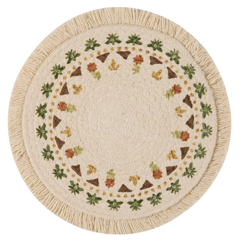Protect your kitchen counters and table in farmhouse style with our Maisley Round Trivet 8" Set of 3. This 8 inch table trivet is the perfect feature to stop heat from hot pots and pans from destroying a valued table or countertop. Dress your fall table in primitive style offering a casual aesthetic expression of primitive colors in concentric braids of 100% cotton. Machine stitching hold braiding together even with increased wear and tear. Reverses to same as front. Set of 3.