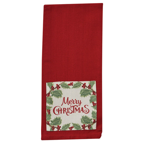 Welcome the Christmas season into your home with our Merry Christmas with greenery and berries graphics on a red towel.