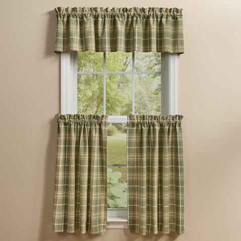 Trim your windows with our Pear Grove Tiers. Green, yellow and white plaid combine to create a charming look in your farmhouse or classic country home! These tiers can be used on their own or paired with the coordinating valances.