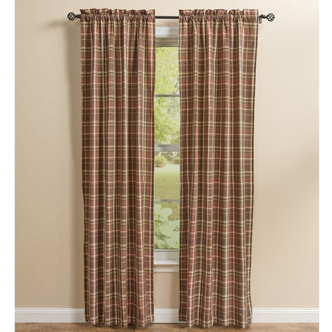 Our Sexton Panel Curtains 84" features hues of brown, white, green, tan and burgundy rose plaid. It's the perfect blend of farmhouse elegance and country charm. Lined.
