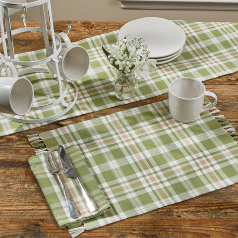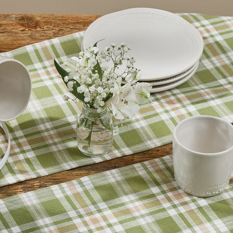 Bring farmhouse charm to your table with this charming Thistledown Table Runner. Featuring a Green plaid design, it's the perfect accent for seasonal gatherings or everyday dining. Soft, durable cotton construction makes it easy to care for while adding that cozy, countryside feel your home deserves. Whether you're setting a spring table or adding rustic flair year-round, this runner pairs beautifully with any décor.