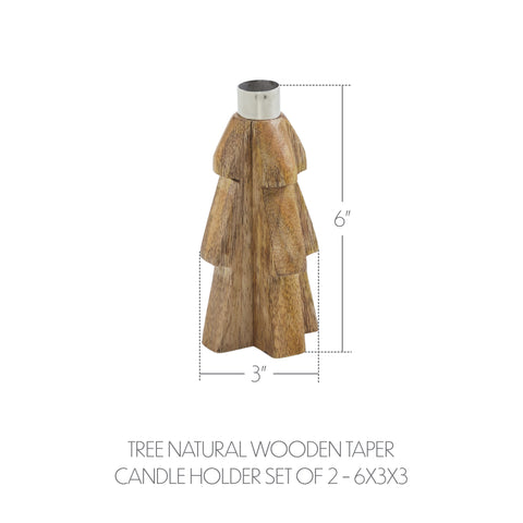 Bring warm, rustic charm to your seasonal decor with the Tree Wooden Taper Candle Holder Set of 2. Crafted from tropical wood, these unique candle holders are shaped like stylized trees in a light natural tan finish. At the top of each tree sits a sleek silver metal insert designed to securely hold a standard taper candle, blending natural textures with metallic contrast. The solid wood construction and clean silhouette give these holders a primitive, handcrafted appeal that's perfect for winter and holiday decorating. The mix of wood and metal offers a balanced, organic look that works well with farmhouse, rustic, or minimalist interiors. Whether displayed on a mantel, dining table, or entryway console, they add understated elegance to any space. Ideal for use in the bathroom, bedroom, dining room, entry, kitchen, or living room, this set of candle holders offers a versatile accent for the season. The neutral tones make them easy to style with other Christmas and winter decorations. For lasting beauty, simply wipe clean with a soft cloth after each use.