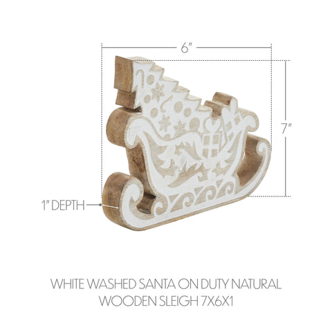 Add a festive and rustic touch to your holiday decor with the Washed Santa on Duty Wooden Sleigh. Measuring 6x7 inches, this charming figurine features a cutout Santa sleigh filled with relief-cut toys and a Christmas tree. The soft whitewash finish with light tan accents is enhanced by distressed high spots that create a vintage, weathered look, beautifully contrasting against the white background. Crafted from durable tropical wood, this sleigh embodies handcrafted charm and fits seamlessly within farmhouse, primitive, or traditional Christmas themes. Its solid color palette and detailed carving make it a versatile accent piece for mantels, shelves, or tabletops. Whether displayed alone or as part of a seasonal arrangement, it brings warmth and festive spirit to your holiday setting. Ideal for use throughout your home-in the bathroom, bedroom, dining room, entryway, kitchen, or living room-the White Washed Santa on Duty Wooden Sleigh adds joyful elegance and cozy character to any space. Easy to maintain, simply wipe clean with a soft cloth to preserve its timeless beauty year after year. This delightful piece is a wonderful addition to your Christmas collection, capturing the magic and spirit of the season.