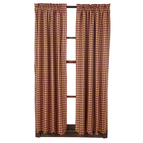 Burgundy and tan checks are blended with faded texture at points of intersection to give a modern face-lift to the classic pattern on the Bedford Burgundy Check Scalloped Short Panel Set. Perfect for your country, primitive cabin and home decor.