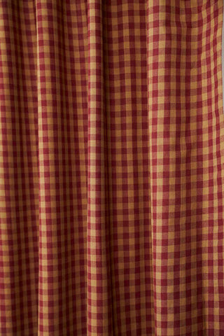 The Bedford Burgundy Star Shower Curtain features solid burgundy base fabric alternating nine patch blocks and 5-point stars on tan ground borders. Perfect for your country primitive home, cabin, or rustic decor! Straight edge. Features 1.5" header with 1" button holes and 3" rod pocket. Measures 72" x 72"
