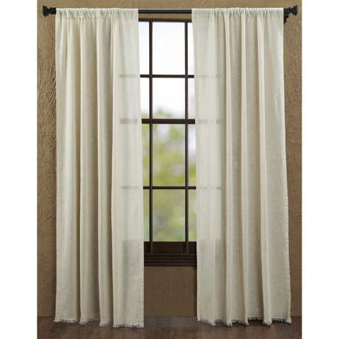 The Tobacco Cloth Natural Fringed Panel Curtain Set features lightweight natural shade tobacco cloth fabric.