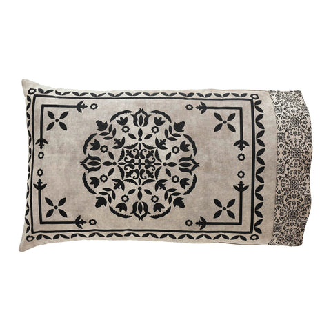 Discover the rustic charm of our Medallion Black & Tan Jacquard Pillow Case Set of 2, a beautiful addition to your country-themed decor. This set includes two rectangular pillow cases crafted from durable twill weave cotton, offering both comfort and texture. In their natural color and featuring a timeless medallion pattern, these cases elevate your bedroom into a cozy haven with their rustic and decorative appeal. The intricate details in the twill weave and medallion design add character and style to your bedding, making them the ideal choice for those who appreciate the fusion of comfort and rustic country aesthetics. Crafted with meticulous attention to detail, these high-quality cotton pillow cases ensure a restful night's sleep while enhancing the primitive charm of your bedroom decor. Set of 2 Pillow Cases.