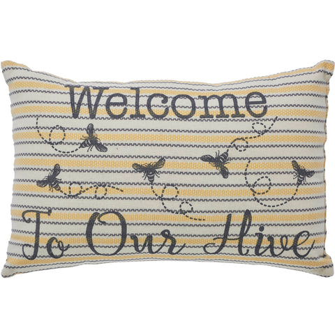 - Vintage charm and primitive appeal: The Golden Bees Welcome to Our Hive Pillow 9.5x14 combines vintage charm and primitive appeal to elevate your decor with its nostalgic text design, making it a wonderful addition to traditional and homespun decor styles.