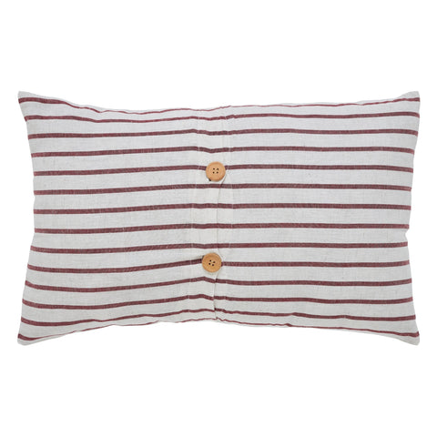 • This filled pillow features a soft creme and red ticking stripe pattern, accented with star and stripe appliques; finished with a fringed edge.