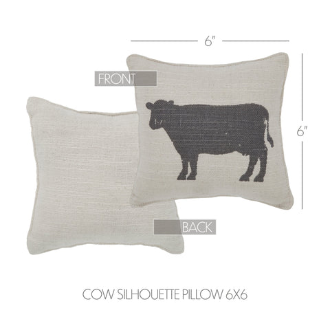 Our Cow Silhouette Mini Pillow is a charming addition to your farmhouse and country-inspired decor. This square 6x6 pillow showcases a graphic print of a rustic cow silhouette on a natural creme slub weave cotton cover filled with soft polyester. It's the perfect decorative pillow for your shelf or table, to fill a space and add a touch of style to you decor. Elevate your home's ambiance with this versatile 6x6 square pillow. Whether used as an accent piece on a shelf or table, the Cow Silhouette Pillow adds a touch of rural charm to any room, creating a cozy and inviting atmosphere. Its neutral color palette and farmhouse-inspired design make it an ideal choice for enhancing your interior decor. Upgrade your space with this delightful pillow, blending seamlessly with a range of design choices, and enjoy the rustic elegance it brings to your home's decor.