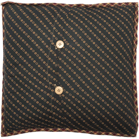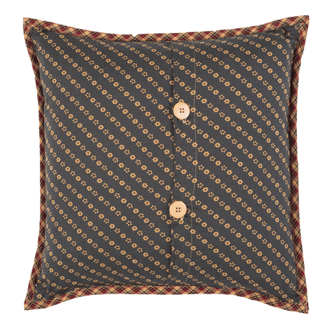 An Americana classic, the Primitive Patch Quilted Filled Pillow triumphs with assorted patchwork blocks in traditional colors of deep red, khaki and navy. Reverses to tea stain floral on navy with two button closures.