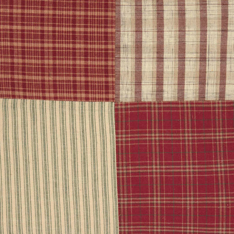 - Various brick red, sage, and khaki fabrics in 4-patch block layout