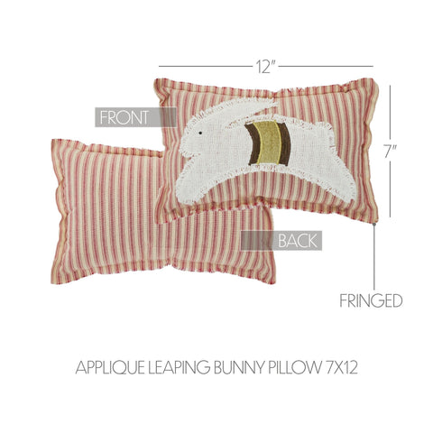 Add a touch of nostalgic charm to your spring decor with the Spring In Bloom Applique Leaping Bunny Pillow. This delightful 7x12 throw pillow captures the essence of vintage style with an old-style bunny appliqued in antique white cotton burlap. The background features vintage tan and barn red stripes, perfectly complementing the rustic and primitive decor themes. Frayed edge trim and reverse seams enhance the handcrafted look, making each pillow unique and full of character. This decorative pillow is perfect for adding a seasonal touch to any part of your home, from the living room sofa to a cozy nook in the bedroom, or even as a charming addition to your entryway. The warm colors and playful design bring a cheerful vibe to your space, ideal for celebrating spring and Easter. The pillow's design and color palette of vintage tan, barn red, and antique white seamlessly blend with existing decor, providing a subtle yet impactful aesthetic.