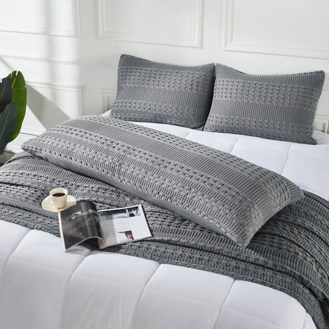 Complete The Look — Pair this versatile dark gray body pillow cover with other pieces from the Waffle Weave Collection to create a cohesive and inviting farmhouse or boho bedroom aesthetic.