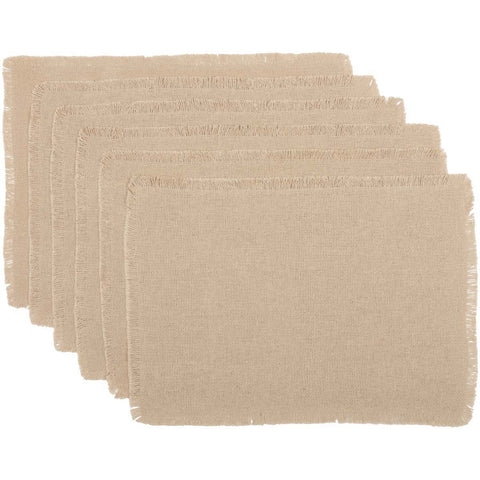 Soft cotton burlap of the country farmhouse Burlap Vintage Tan Placemats provides a neutral backdrop for your favorite table setting. This placemat can transition with your setting should you choose to dress it up or keep it simple. Set of 6 placemats.