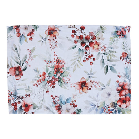 Add Holiday elegance to your dining table with our First Snow Placemat Set of 4. The placemat features a beautiful floral and berry design.